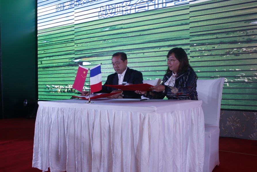 領(lǐng)導(dǎo)致辭后,內(nèi)蒙古農(nóng)牧業(yè)產(chǎn)業(yè)化龍頭企業(yè)協(xié)會(huì)同法國(guó)工商會(huì)共同簽署了友好合作協(xié)議。