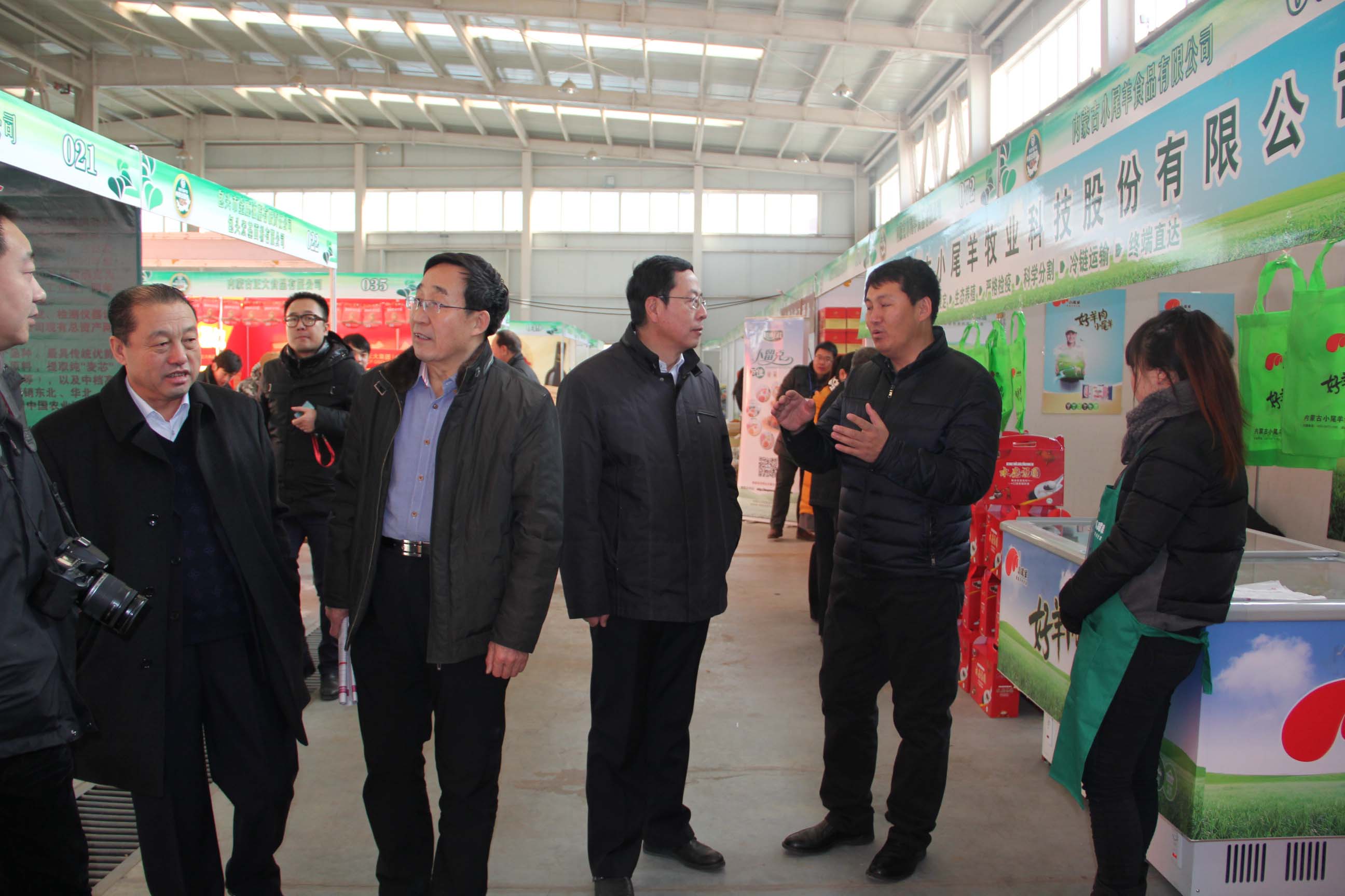 會員企業(yè)內蒙古小尾羊牧業(yè)科技股份有限公司負責人為農牧業(yè)廳副廳長賈躍峰、農牧業(yè)廳產業(yè)化處處長王補在、協(xié)會執(zhí)行會長林永亮介紹公司產品