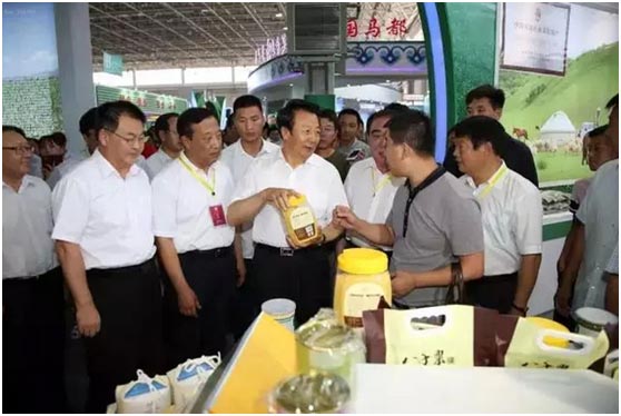 隨后,自治區(qū)黨委書記王君,自治區(qū)政協(xié)主席任亞平,自治區(qū)黨委常委、呼和浩特市委書記那順孟和,自治區(qū)副主席王玉明等領(lǐng)導(dǎo)在市委書記何永林,市委副書記、市長段志強的陪同下,參觀了12個盟市和部分企業(yè)的展區(qū)。在參觀過程中,王君書記強調(diào)我們要積極適應(yīng)和引領(lǐng)經(jīng)濟發(fā)展新常態(tài),毫不放松地抓好農(nóng)牧業(yè)生產(chǎn),打好產(chǎn)品優(yōu)勢牌,走好企業(yè)特色路,不斷培育產(chǎn)業(yè)新的增長點。并要抓住互聯(lián)網(wǎng)時代信息與各類產(chǎn)業(yè)融合發(fā)展的新機遇,充分利用好互聯(lián)網(wǎng)+的新模式,為我區(qū)綠色農(nóng)畜產(chǎn)品生產(chǎn)加工輸出插上信息化的翅膀。