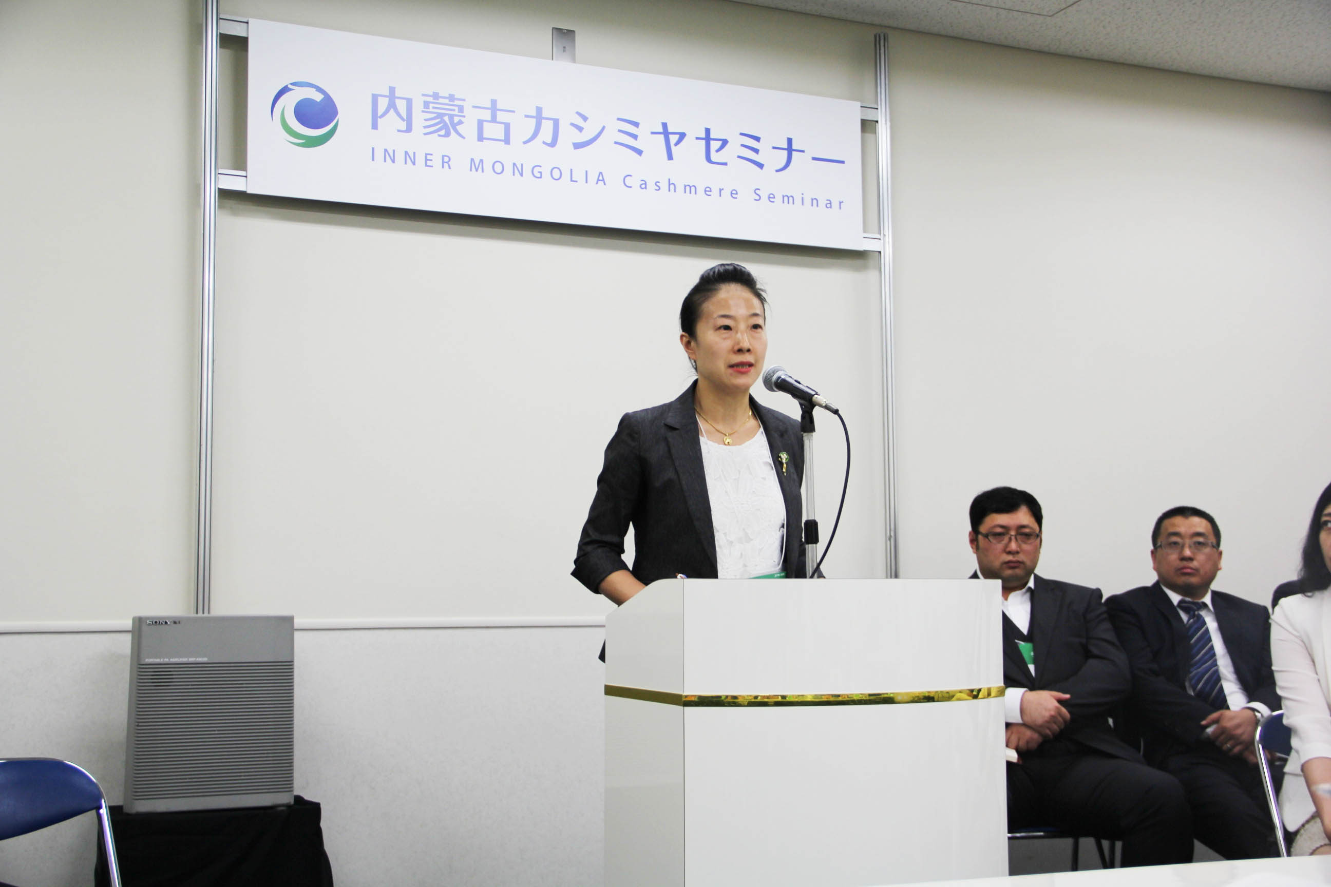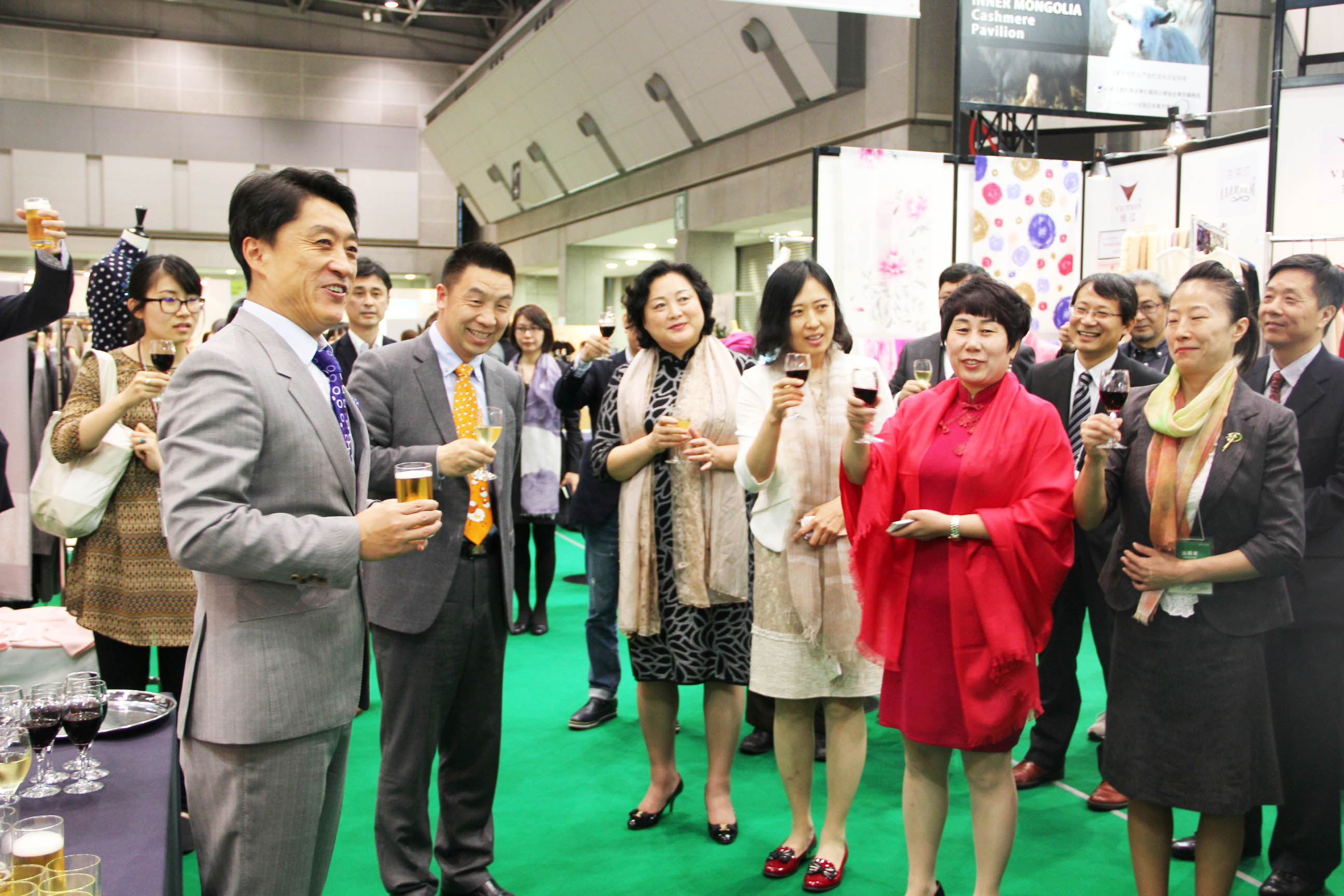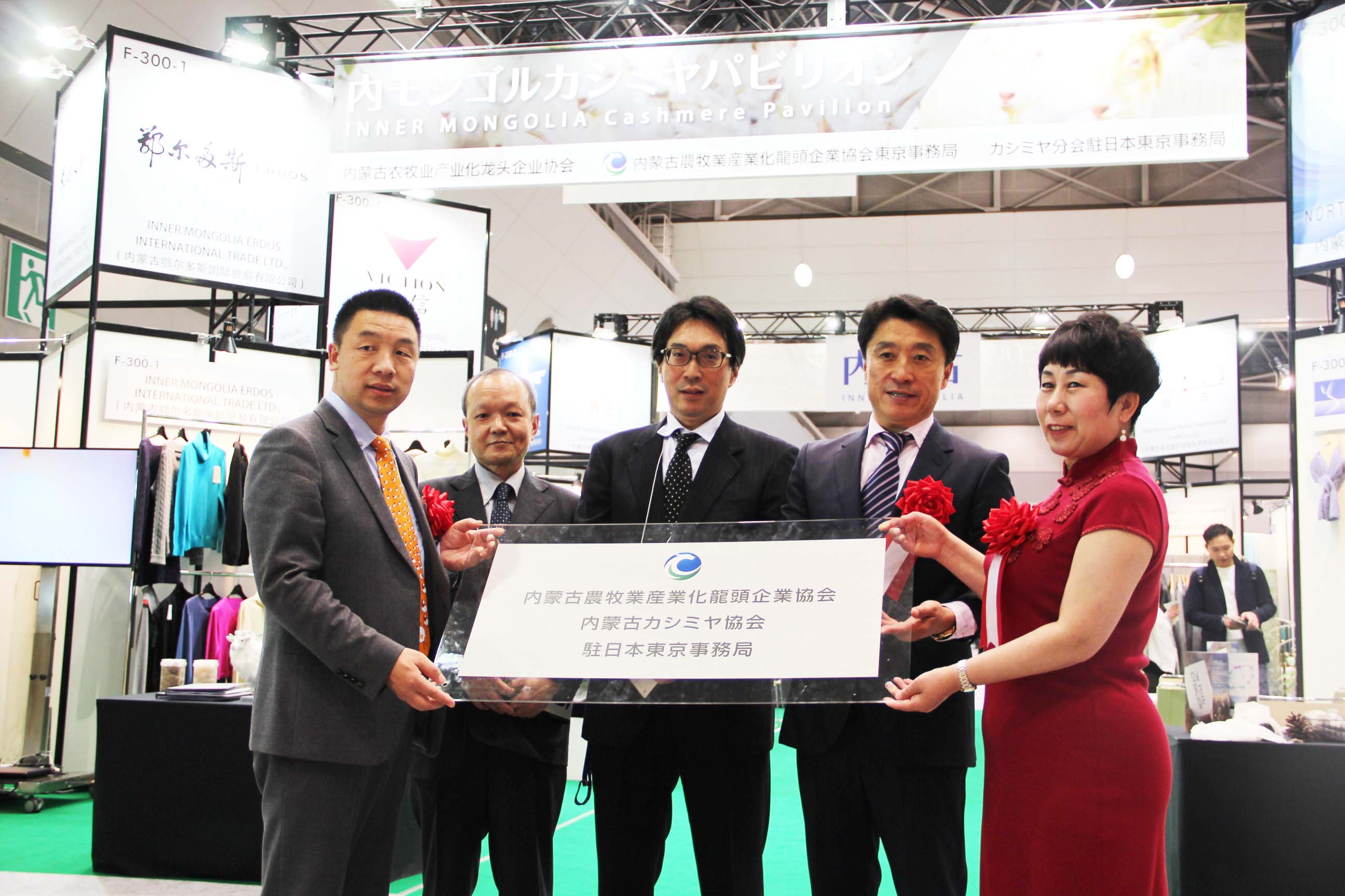 2016426日上午11時,在內(nèi)蒙古羊絨展區(qū)前,舉行了盛大的開業(yè)剪彩儀式,內(nèi)蒙古自治農(nóng)牧業(yè)廳產(chǎn)業(yè)化處副處長郟金梅、內(nèi)蒙古農(nóng)牧產(chǎn)業(yè)化龍頭企業(yè)協(xié)會會長閆樹春、內(nèi)蒙古農(nóng)牧產(chǎn)業(yè)化龍頭企業(yè)協(xié)會羊絨產(chǎn)業(yè)分會會長王風之出席剪彩儀式,并分別就政府支持、協(xié)會服務(wù)和企業(yè)自律發(fā)展等幾方面做了精彩致辭。郟金梅副處長表示,希望通過此次活動,使得社會各界代表能夠贏得機遇、拓展空間,取得豐碩的成果,同時真誠盼望各方來賓、新老朋友能夠進一步了解內(nèi)蒙古羊絨,認識內(nèi)蒙古羊絨,并以此為契機,加強內(nèi)蒙古羊絨界與日本企業(yè)的合作,攜手發(fā)展,實現(xiàn)共贏,共創(chuàng)輝煌。閆樹春會長在致辭中講到,我們此行不僅是要展示內(nèi)蒙古羊絨原料優(yōu)勢地位和行業(yè)加工的專業(yè)性,更希望能充分利用各個平臺廣泛交流,探討合作途徑的契合點,推動兩國羊絨行業(yè)多方共贏,共同提升全球市場對羊絨產(chǎn)品的認知度,希望我們的羊絨企業(yè)能團結(jié)一致,實現(xiàn)羊絨產(chǎn)業(yè)的可持續(xù)發(fā)展。羊絨產(chǎn)業(yè)分會會長王風之在致辭中表示,通過內(nèi)蒙古農(nóng)牧業(yè)產(chǎn)業(yè)化龍頭企業(yè)協(xié)會羊絨分會的平臺,我們勢必會在培育超細超長型產(chǎn)絨山羊、提升優(yōu)質(zhì)種群的規(guī)模、建立行業(yè)質(zhì)量標準和抱團發(fā)展,積極進行海外市場渠道、品牌、投資等多方面取得突破性進展,致力于將中國內(nèi)蒙古羊絨打造成為全球性的產(chǎn)業(yè)品牌。