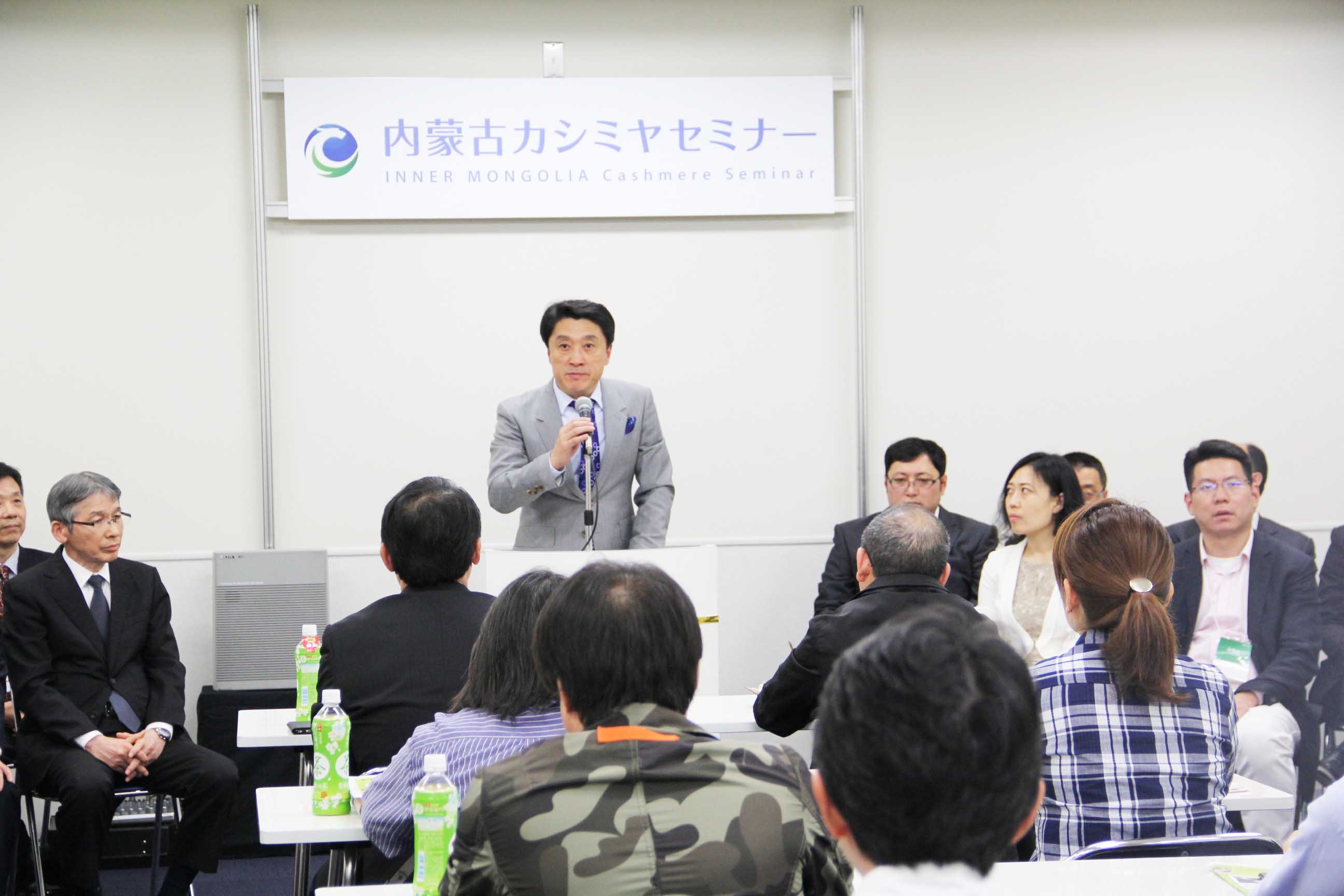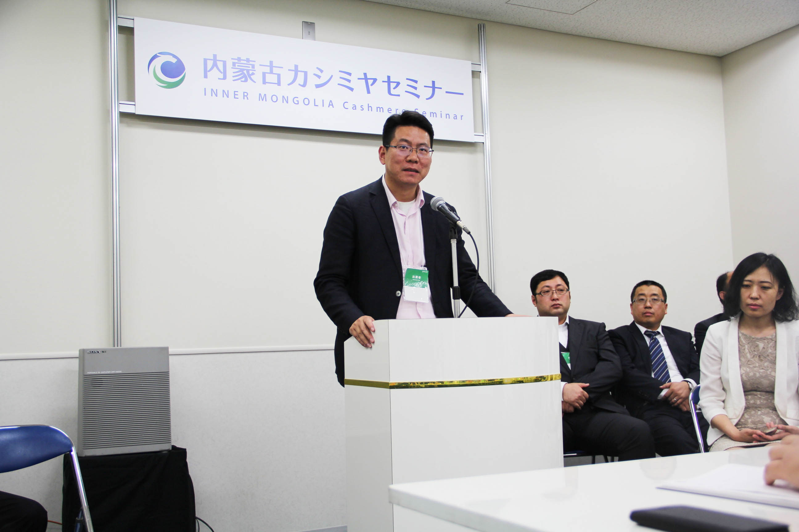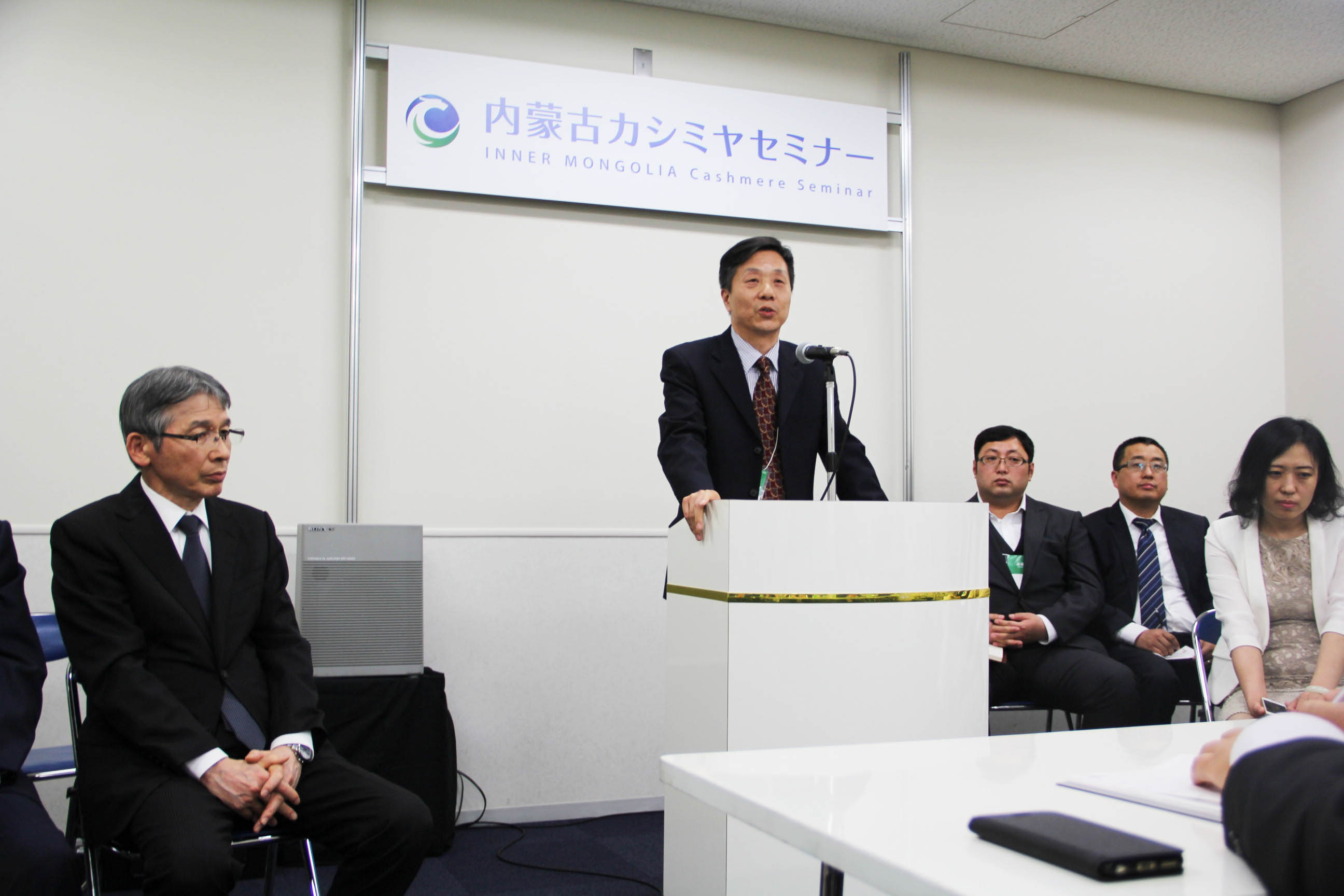 2016426日上午11時,在內(nèi)蒙古羊絨展區(qū)前,舉行了盛大的開業(yè)剪彩儀式,內(nèi)蒙古自治農(nóng)牧業(yè)廳產(chǎn)業(yè)化處副處長郟金梅、內(nèi)蒙古農(nóng)牧產(chǎn)業(yè)化龍頭企業(yè)協(xié)會會長閆樹春、內(nèi)蒙古農(nóng)牧產(chǎn)業(yè)化龍頭企業(yè)協(xié)會羊絨產(chǎn)業(yè)分會會長王風之出席剪彩儀式,并分別就政府支持、協(xié)會服務(wù)和企業(yè)自律發(fā)展等幾方面做了精彩致辭。郟金梅副處長表示,希望通過此次活動,使得社會各界代表能夠贏得機遇、拓展空間,取得豐碩的成果,同時真誠盼望各方來賓、新老朋友能夠進一步了解內(nèi)蒙古羊絨,認識內(nèi)蒙古羊絨,并以此為契機,加強內(nèi)蒙古羊絨界與日本企業(yè)的合作,攜手發(fā)展,實現(xiàn)共贏,共創(chuàng)輝煌。閆樹春會長在致辭中講到,我們此行不僅是要展示內(nèi)蒙古羊絨原料優(yōu)勢地位和行業(yè)加工的專業(yè)性,更希望能充分利用各個平臺廣泛交流,探討合作途徑的契合點,推動兩國羊絨行業(yè)多方共贏,共同提升全球市場對羊絨產(chǎn)品的認知度,希望我們的羊絨企業(yè)能團結(jié)一致,實現(xiàn)羊絨產(chǎn)業(yè)的可持續(xù)發(fā)展。羊絨產(chǎn)業(yè)分會會長王風之在致辭中表示,通過內(nèi)蒙古農(nóng)牧業(yè)產(chǎn)業(yè)化龍頭企業(yè)協(xié)會羊絨分會的平臺,我們勢必會在培育超細超長型產(chǎn)絨山羊、提升優(yōu)質(zhì)種群的規(guī)模、建立行業(yè)質(zhì)量標準和抱團發(fā)展,積極進行海外市場渠道、品牌、投資等多方面取得突破性進展,致力于將中國內(nèi)蒙古羊絨打造成為全球性的產(chǎn)業(yè)品牌。