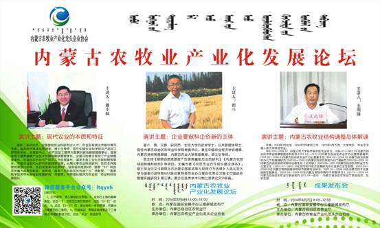 綠博會期間,由自治區(qū)農(nóng)牧業(yè)廳主辦、內(nèi)蒙古農(nóng)牧業(yè)產(chǎn)業(yè)化龍頭企業(yè)協(xié)會承辦的內(nèi)蒙古農(nóng)牧業(yè)產(chǎn)業(yè)化發(fā)展論壇如期舉行。論壇旨在推動現(xiàn)代農(nóng)牧業(yè)發(fā)展方式轉(zhuǎn)變,聚焦農(nóng)牧業(yè)供給側(cè)結(jié)構(gòu)性改革和互聯(lián)網(wǎng)+發(fā)展思路,邀請區(qū)內(nèi)外農(nóng)牧業(yè)領(lǐng)域知名專家和學者現(xiàn)場傳授,共同探討,共享綠博會成果,共商產(chǎn)業(yè)發(fā)展大計。論壇同期發(fā)布第四屆內(nèi)蒙古名優(yōu)特農(nóng)畜產(chǎn)品和第三屆包裝設計大賽評審結(jié)果,內(nèi)蒙古日報、農(nóng)民日報82日第四版同時公布獲獎名單,敬請關(guān)注。