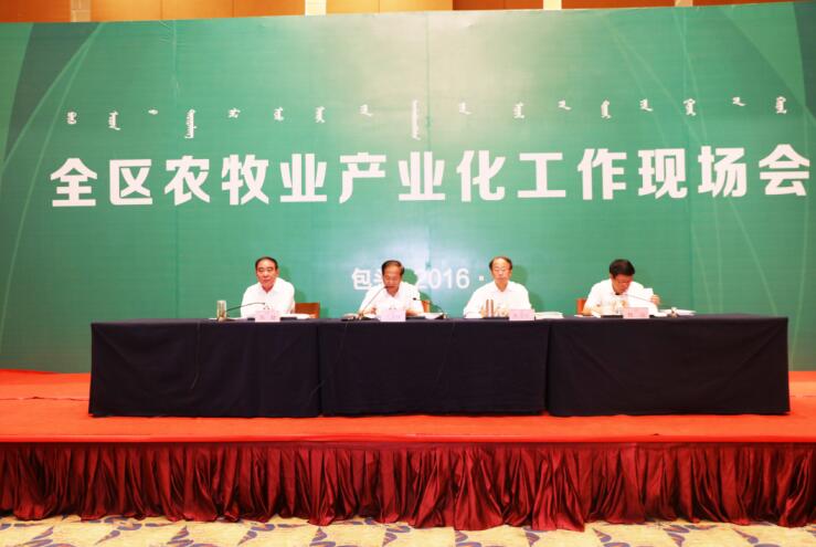 農(nóng)牧業(yè)廳廳長郭健在會(huì)上通報(bào)了我區(qū)農(nóng)牧業(yè)產(chǎn)業(yè)化發(fā)展情況。近年來,在自治區(qū)黨委、政府的正確領(lǐng)導(dǎo)下,農(nóng)牧業(yè)產(chǎn)業(yè)化工作以“建設(shè)綠色農(nóng)畜產(chǎn)品生產(chǎn)加工輸出基地”為抓手,積極推進(jìn)一二三產(chǎn)融合發(fā)展,走出了一條行之有效的發(fā)展之路,農(nóng)畜產(chǎn)品加工業(yè)已成為我區(qū)繼能源、冶金之后第三大工業(yè)支柱產(chǎn)業(yè),為增加農(nóng)牧民收入,促進(jìn)全區(qū)經(jīng)濟(jì)社會(huì)平穩(wěn)較快發(fā)展作出了重要貢獻(xiàn)。郭廳長指出,面對(duì)新形勢新任務(wù),全區(qū)農(nóng)牧業(yè)產(chǎn)業(yè)化工作要深入貫徹落實(shí)“創(chuàng)新、協(xié)調(diào)、綠色、開放、共享”五大發(fā)展理念,堅(jiān)持以供給側(cè)結(jié)構(gòu)性改革為動(dòng)力,著力培育領(lǐng)軍企業(yè),創(chuàng)建知名品牌,延伸產(chǎn)業(yè)鏈條,統(tǒng)籌推進(jìn)農(nóng)畜產(chǎn)品初加工、精深加工和綜合利用,加強(qiáng)農(nóng)畜產(chǎn)品輸出平臺(tái)建設(shè),完善龍頭企業(yè)與農(nóng)牧民利益聯(lián)結(jié)機(jī)制,推進(jìn)一二三產(chǎn)業(yè)融合發(fā)展。郭健廳長強(qiáng)調(diào)重點(diǎn)要在八個(gè)方面“實(shí)現(xiàn)突破”:一是在政策扶持上求突破,二是在產(chǎn)業(yè)發(fā)展上求突破,三是在培育龍頭企業(yè)上求突破,四是在培育品牌上求突破,五是在完善利益聯(lián)結(jié)機(jī)制上求突破,六是在推進(jìn)“輸出”上求突破,七是在推進(jìn)三產(chǎn)融合試點(diǎn)上求突破,八是在產(chǎn)業(yè)扶貧上求突破。依托內(nèi)蒙古天藍(lán)地綠、山清水凈、空氣清新、環(huán)境優(yōu)良的生態(tài)優(yōu)勢,努力開創(chuàng)農(nóng)牧業(yè)產(chǎn)業(yè)化經(jīng)營發(fā)展新局面,為全區(qū)經(jīng)濟(jì)社會(huì)發(fā)展作出新的更大貢獻(xiàn)。