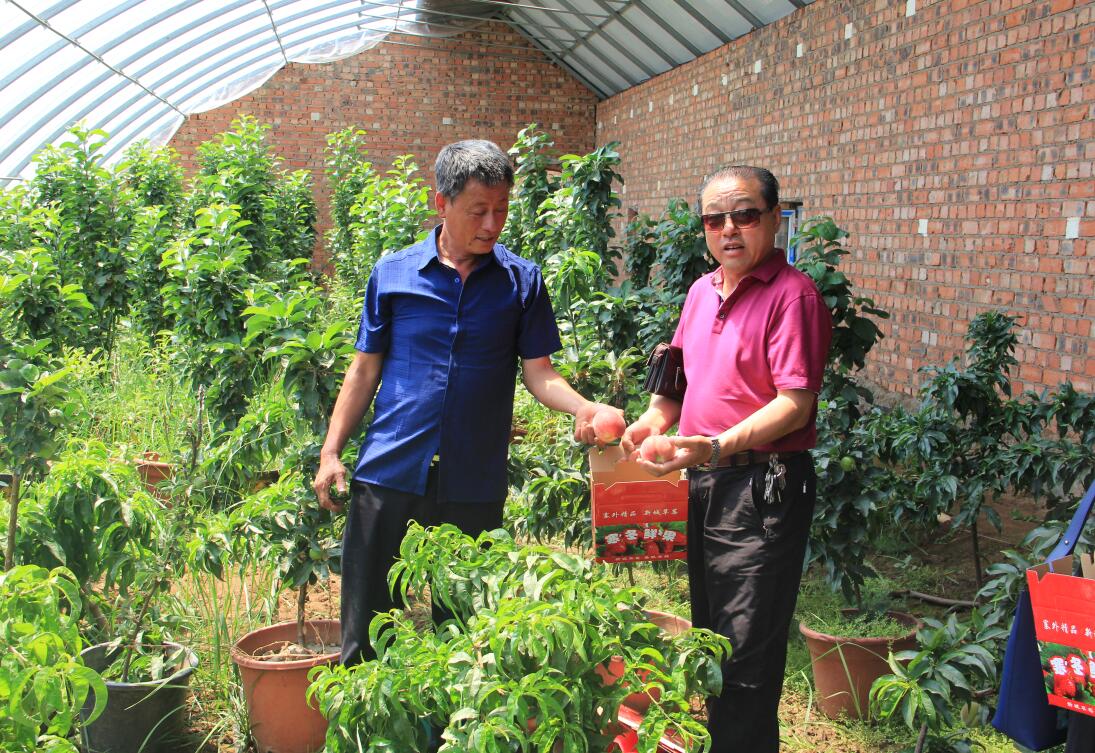 呼和浩特市新城區(qū)野馬圖裕豐種植農(nóng)民專業(yè)合作社周俊表與協(xié)會執(zhí)行會長兼秘書長林永亮體驗采摘