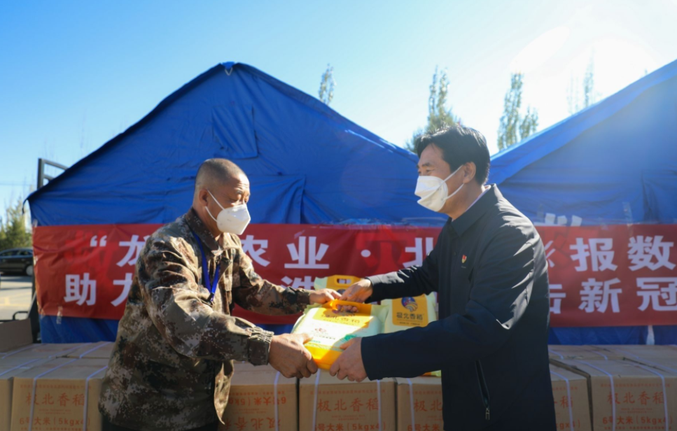 7、副會長單位-龍鼎(內蒙古)農業(yè)股份有限公司:10月4日,“龍鼎農業(yè)·北方新報數字農場”為呼和浩特市新城區(qū)紅山口村封控區(qū)內居民送去1萬袋總價值88萬元的極北香稻,這批大米將由工作人員送到封控區(qū)近萬戶居民家中。