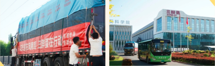 從區(qū)域品牌到全國(guó)領(lǐng)先,一路成為農(nóng)業(yè)產(chǎn)業(yè)化國(guó)家重點(diǎn)龍頭企業(yè),三胖蛋的成長(zhǎng)路上,始終離不開(kāi)家鄉(xiāng)的支持和關(guān)懷。帶著向日葵“一生向陽(yáng)”的韌勁,挺身而出,用愛(ài)心物資搭起溫暖的橋。