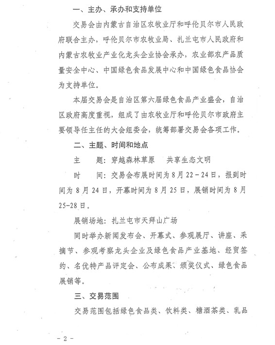 關于舉辦2013·內蒙古(扎蘭屯)第六屆綠色食品交易會的通知