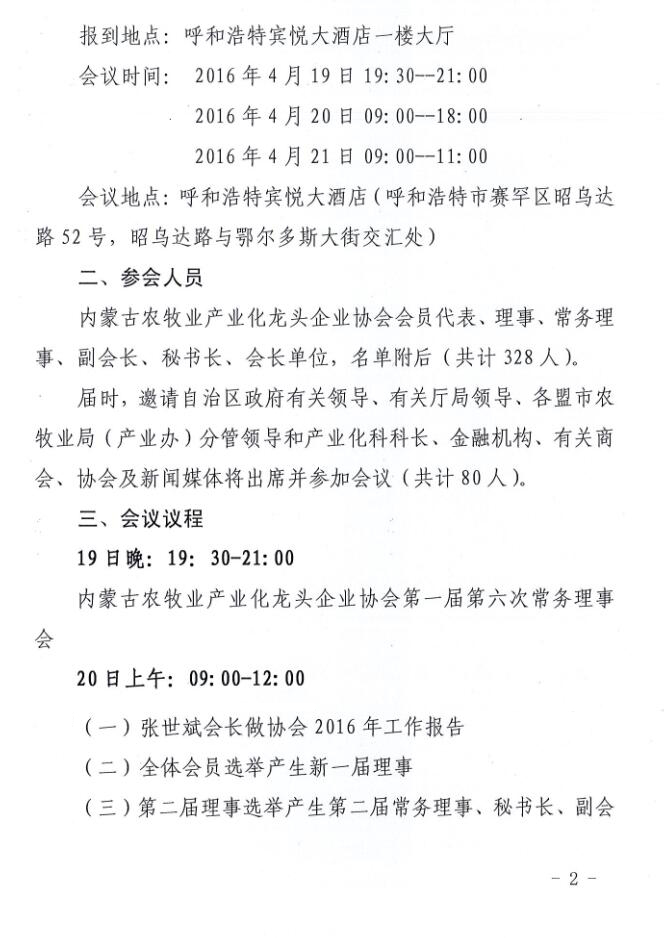關(guān)于召開內(nèi)蒙古農(nóng)牧業(yè)產(chǎn)業(yè)化龍頭企業(yè)協(xié)會第二屆第一次理事會暨會員代表大會的通知