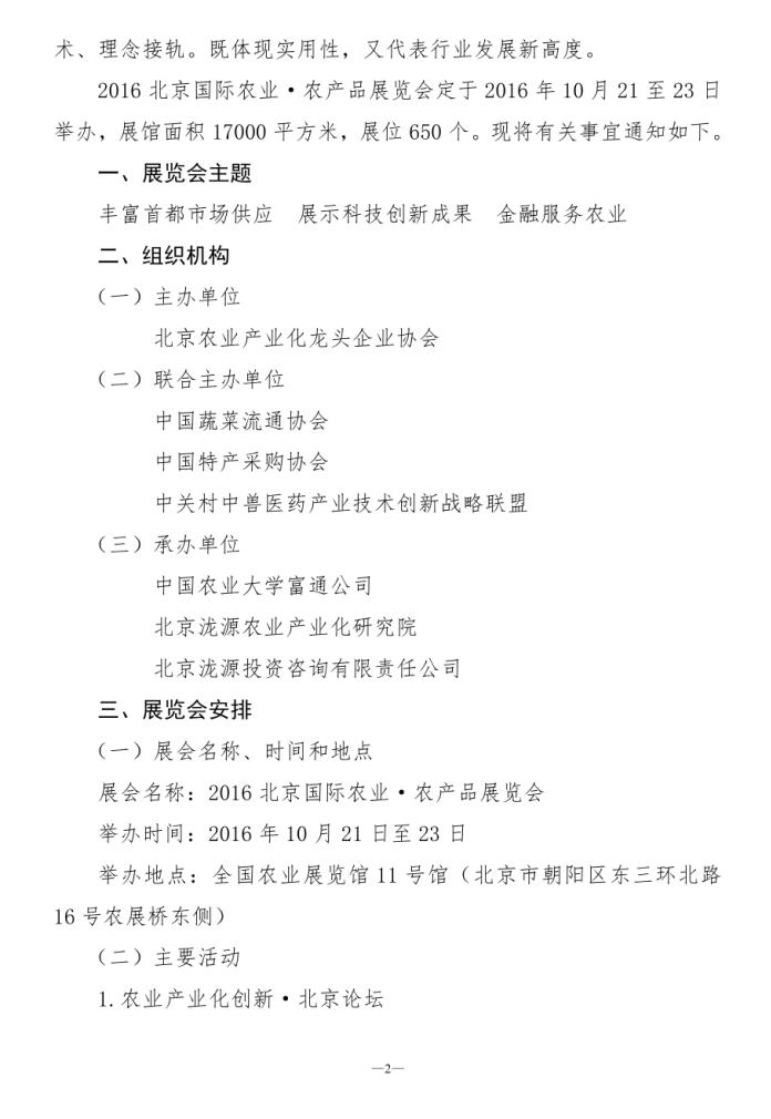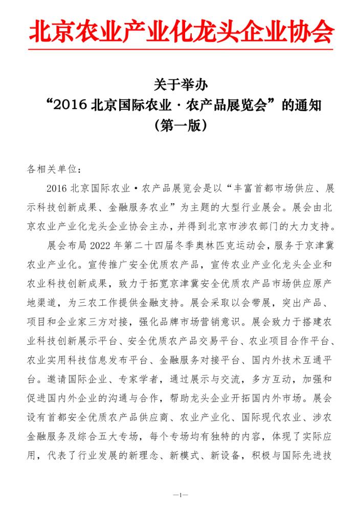 關(guān)于舉辦“2016北京國際農(nóng)業(yè)·農(nóng)產(chǎn)品展覽會”的通知