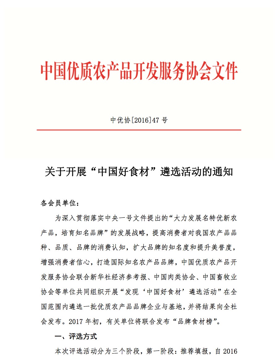 轉(zhuǎn)發(fā):關(guān)于開展“中國好食材”遴選活動(dòng)的通知