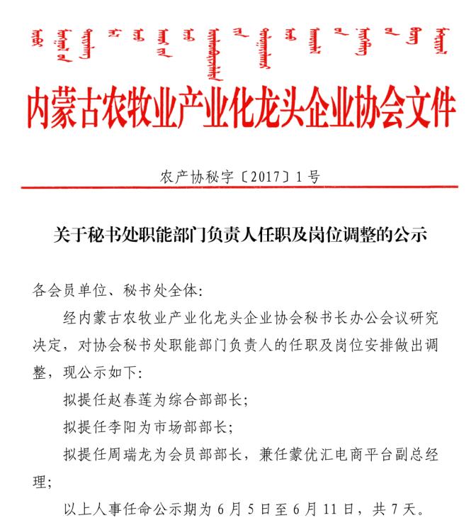 關(guān)于秘書處職能部門負責人任職及崗位調(diào)整的公示