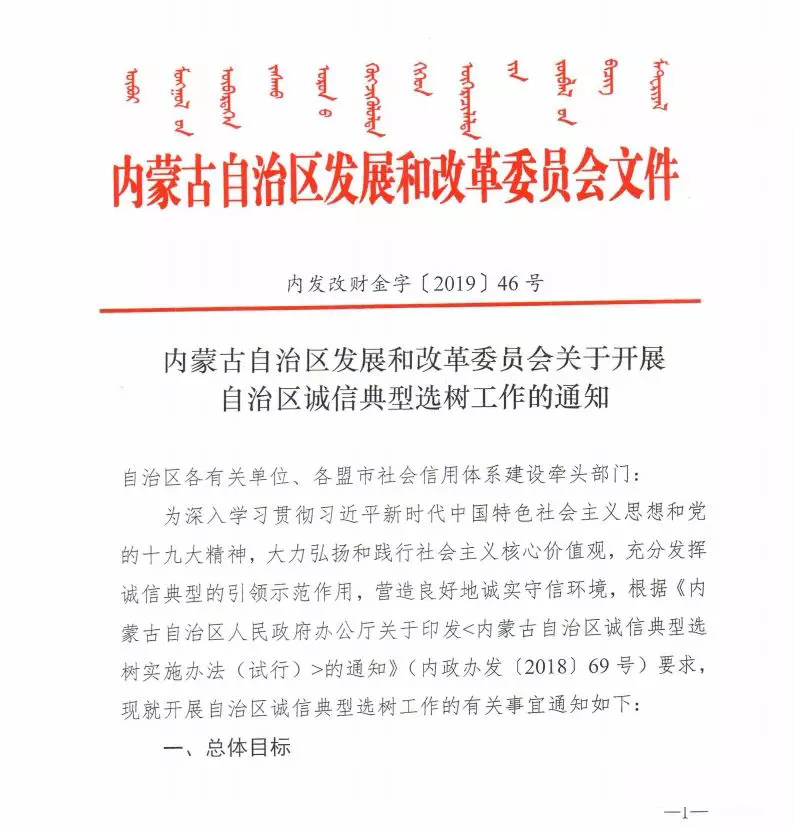 內(nèi)蒙古自治區(qū)發(fā)展和改革委員會(huì)關(guān)于開展自治區(qū)誠信典型選樹工作的通知