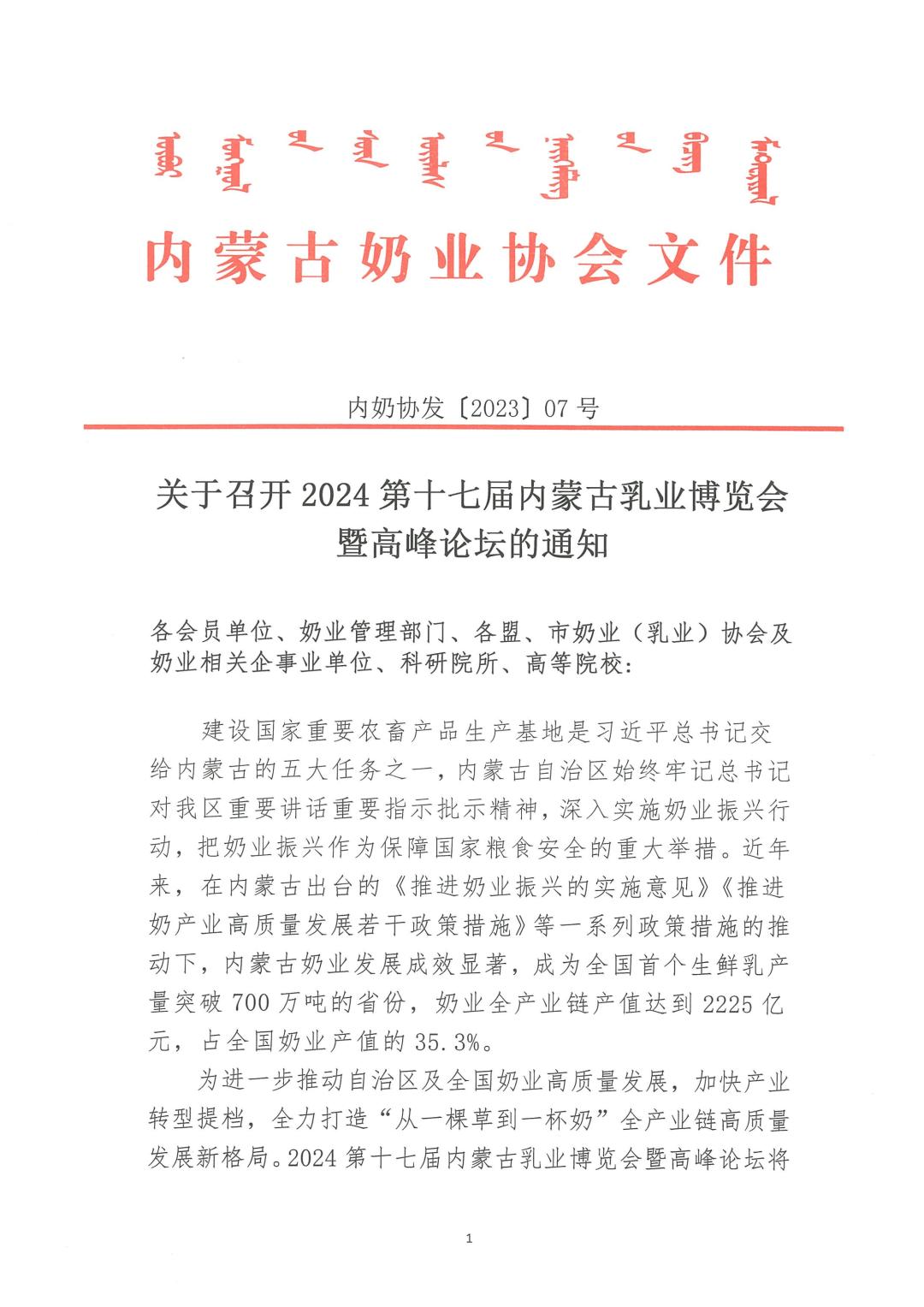 轉發(fā):關于召開2024第十七屆內蒙古乳業(yè)博覽會暨高峰論壇的通知