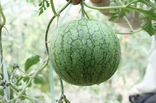 華萊士瓜盛產(chǎn)于內(nèi)蒙古磴口縣,產(chǎn)區(qū)地處烏蘭布和,為黃河沖積平原,土層深厚,土壤肥沃,含大量有機(jī)礦物質(zhì);年日照3000小時(shí)以上,氣候干燥,晝夜溫差大;水源泉豐富,年降水量160毫米左右,雖干旱少雨,但黃河穿區(qū)而過,灌溉方便。由于這種特質(zhì)的生長環(huán)境,使得華萊士瓜具有獨(dú)特的品質(zhì)特性:皮色鮮艷、皮薄肉細(xì)、光滑潔潤、甜之如蜜、汗液適可、軟脆適度,具有蜜桃、蘋果、荔枝、香蕉、芒果等多種味道,香氣濃郁、營養(yǎng)豐富、香甜爽口,被譽(yù)為“瓜中仙品”。