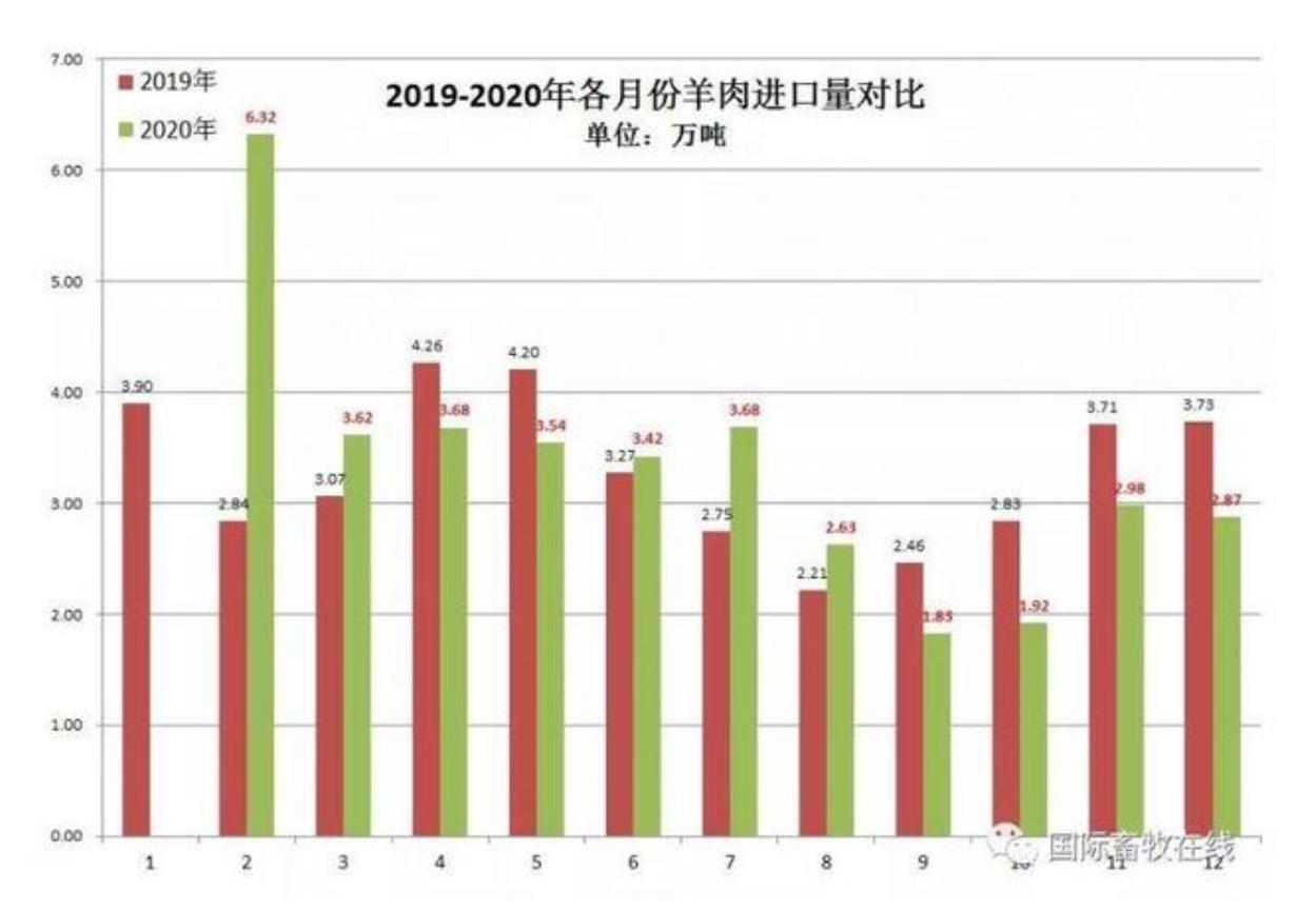 備注:20202月份數(shù)值為1-2月累計(jì)數(shù)據(jù),圖表來源于國際畜牧在線)